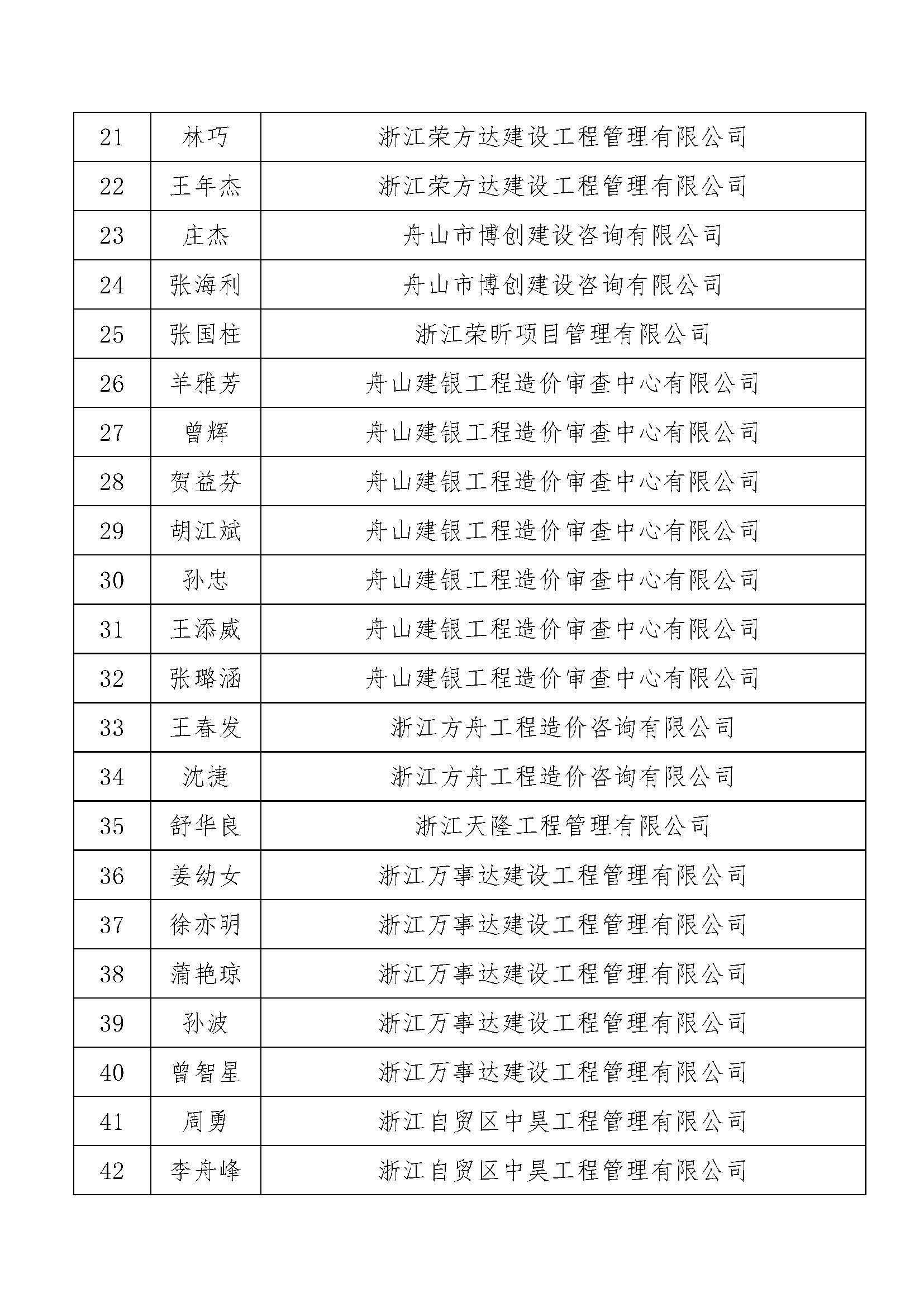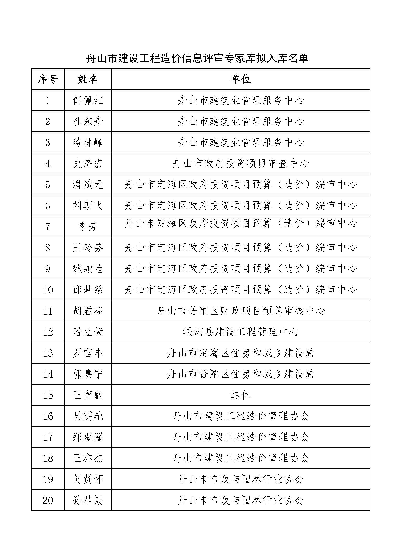 附件:舟山市建设工程造价信息评审专家库拟入库名单